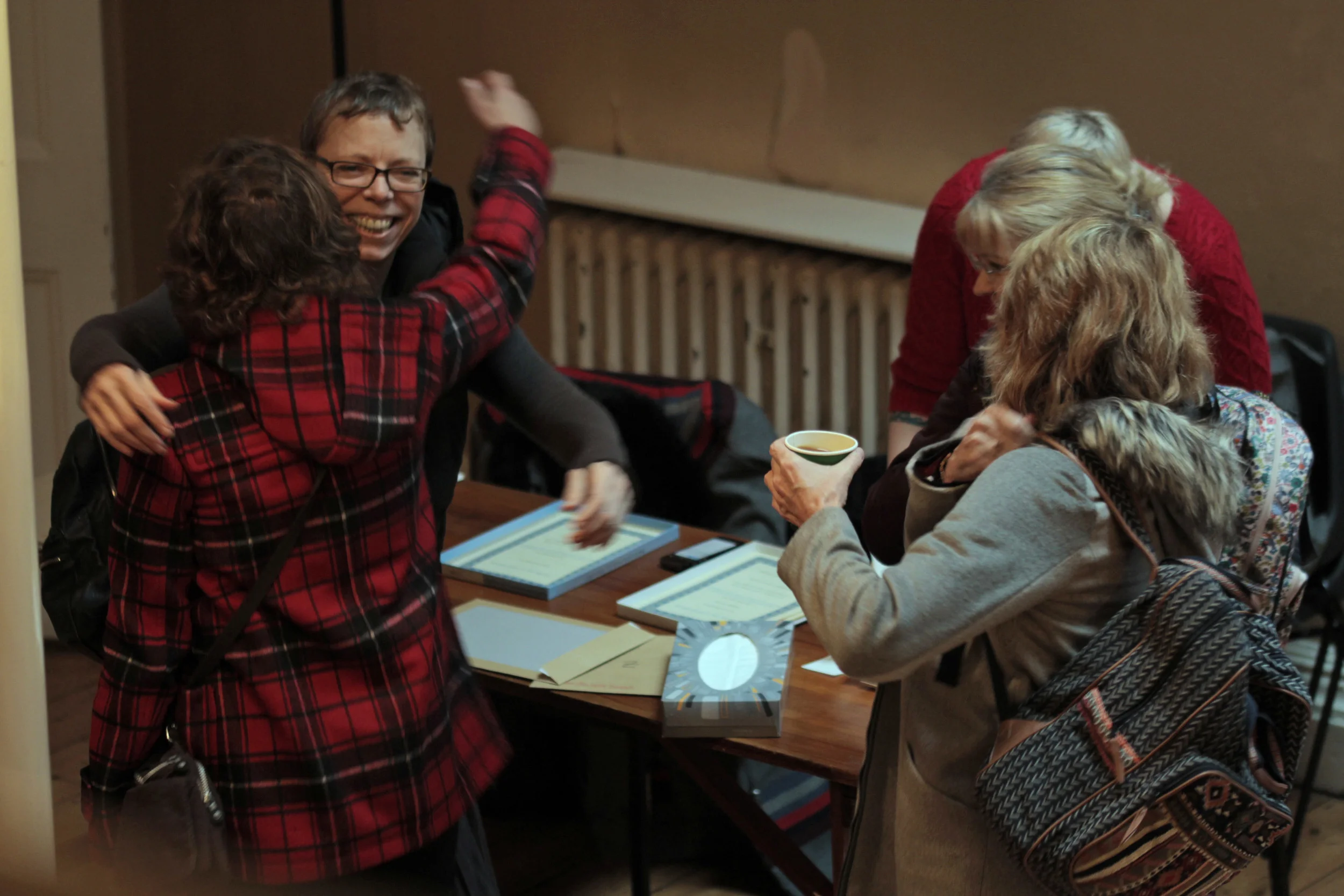 Arrivals and greetings as attendees of the seminar day meet at Colet House, West London. Image courtesy of the British Gestalt Journal.